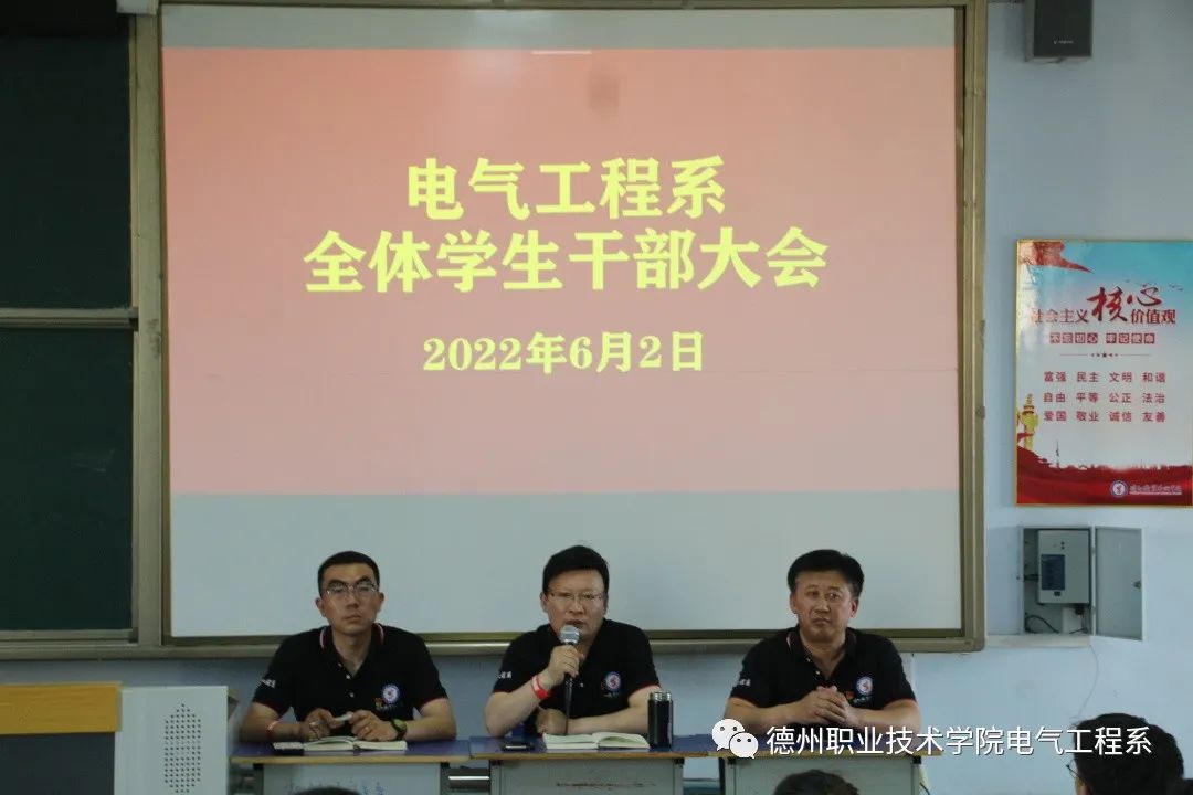 2022年6月2日下午五点,我系在教学区C座507举行了电气工程系全体学生干部大会。出席本次大会的领导有党总支书记田树军、党总支副书记宋清龙和学生科科长王振,以及我系全体学生干部。