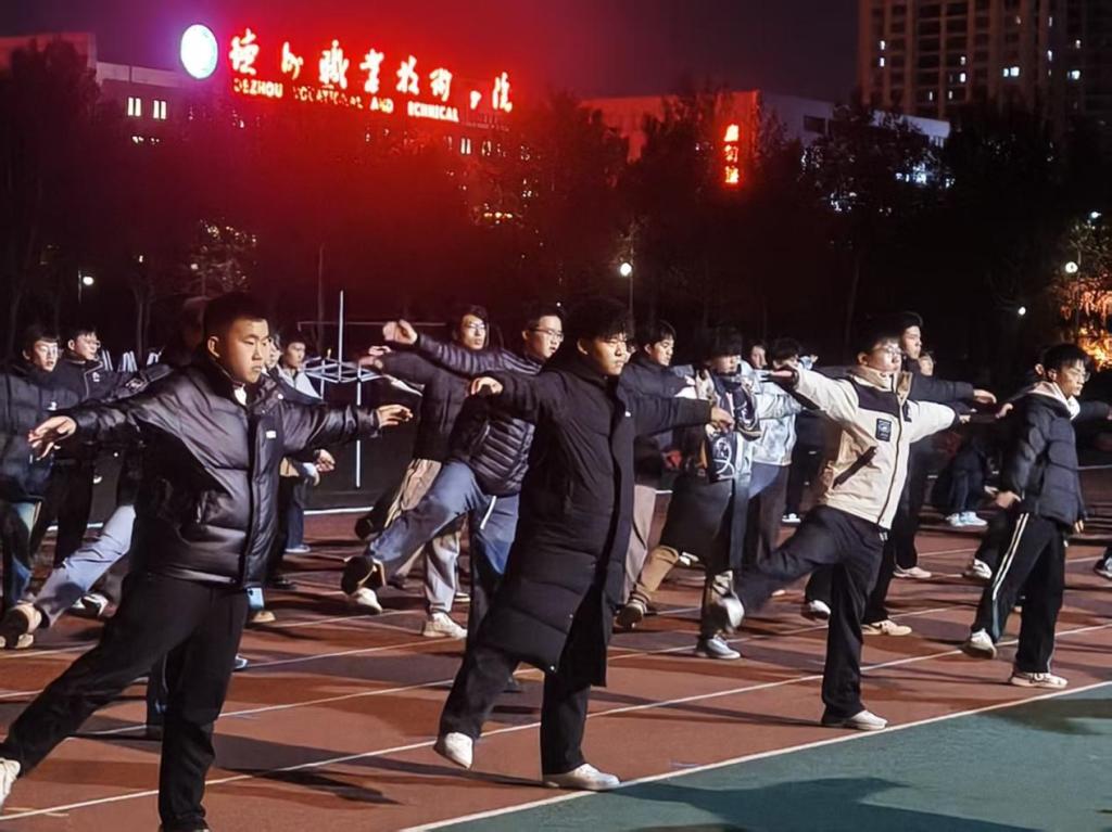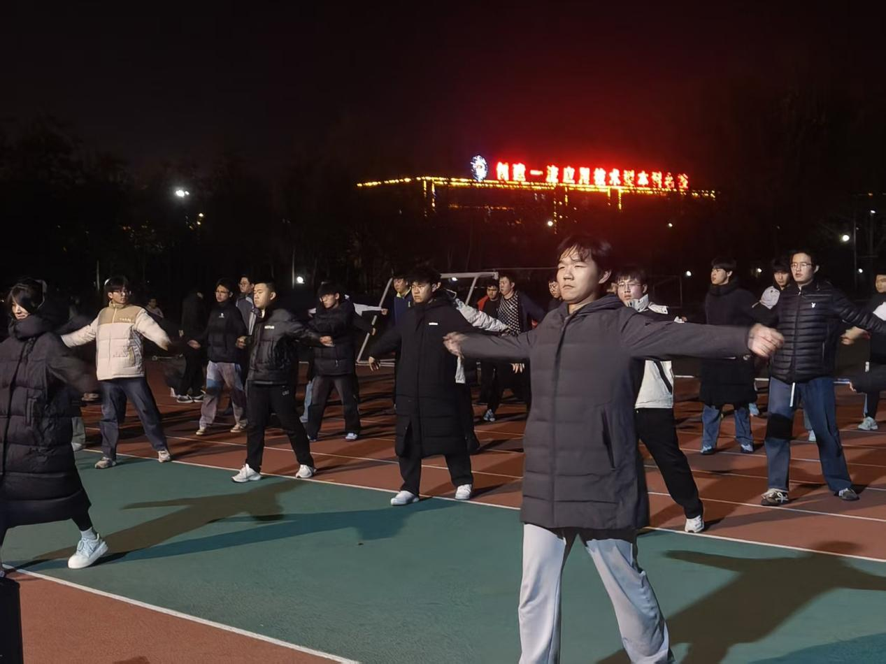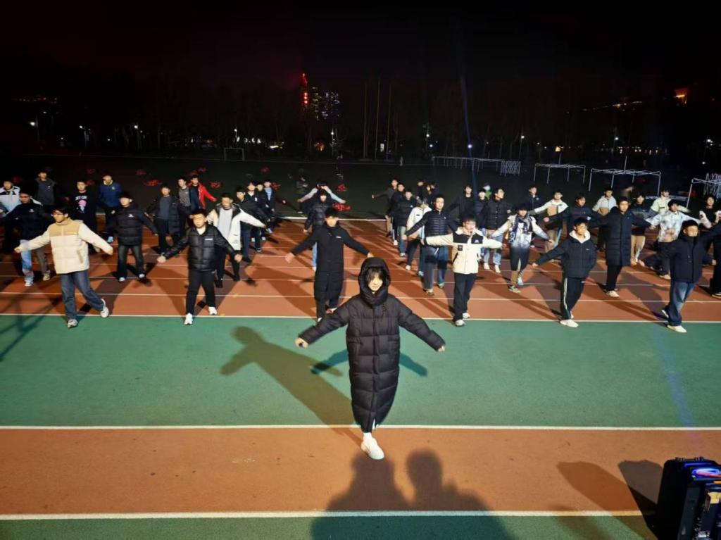 同学们都以饱满的热情投入排练,从队列整齐化调整到每一个动作的精准规范,抬手、伸展、弯腰、跳跃,每一个姿势都力求标准到位;眼神专注、步伐统一,每一次练习都展现出坚韧不拔的毅力。排练过程中,同学们默契配合,充分展现了绿色能源学院学子团结协作的优良作风。整齐划一的动作、昂扬向上的精神状态,成为校园里一道亮丽的风景线。