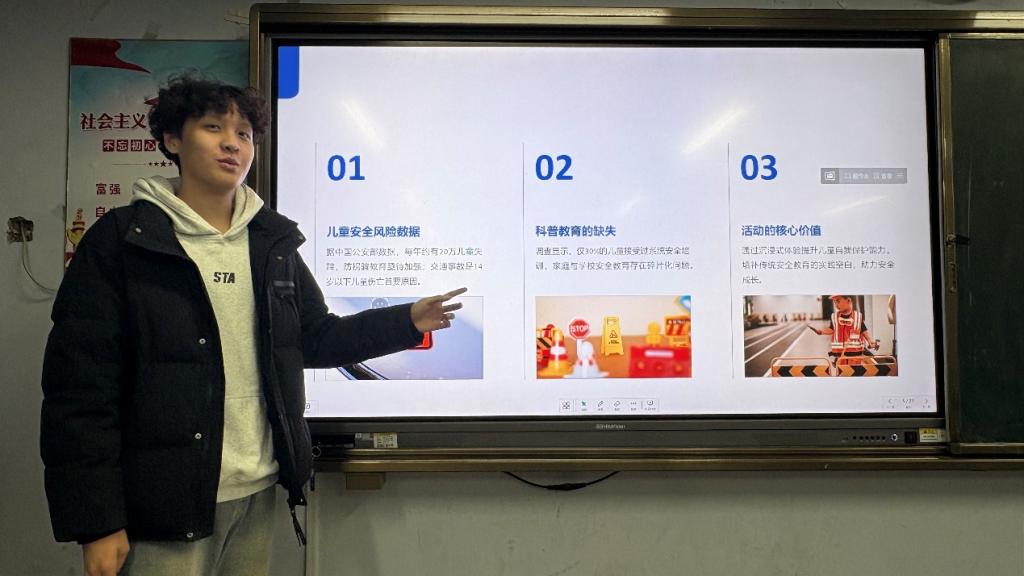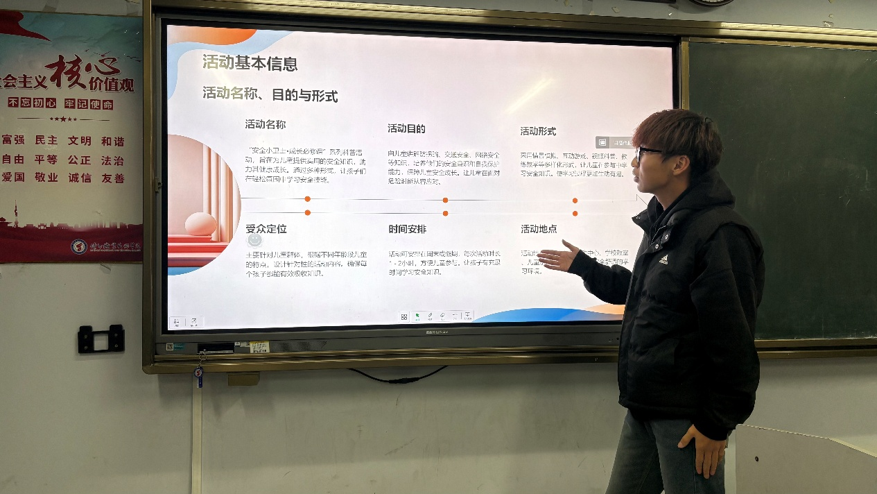 本次活动紧扣儿童成长关键需求,绿色能源学院学子们以PPT为核心载体打造沉浸式科普课堂。围绕防拐骗、交通安全、网络安全三大重点,绿色能源学院学子们通过生动图片、通俗文字拆解防拐自救技巧,以动画演示解读交通规则,结合场景科普网络安全知识,搭配问答互动让安全知识轻松入脑。