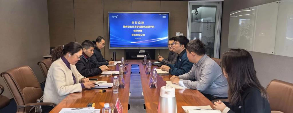 在走访调研过程中,两家企业负责人对学院团队的到访表示热烈欢迎。兰剑智能科技校企合作负责人朱木欣在座谈会上详细介绍了校企双方十余年来的合作成效。自2012年兰剑物流临邑生产基地建成投产以来,公司与学院建立了长期稳定的合作关系。目前,公司现有140余名我院毕业生在岗,分布在PLC调试、运维调试、设备装配、项目管理等关键岗位,部分毕业生已成长为技术骨干和中层管理人员。恩光能源副总经理李振介绍了公司发展概况,重点阐述了新能源领域的技术优势与产业布局。他表示,公司将积极响应学院产教融合发展战略,拟在共建光储充微电网数智教学实训基地合、定制化人才培养项目、联合开展储能技术研发等领域开展深度合作。双方将充分发挥各自优势,共同培育高素质技术技能人才,助力新能源产业高质量发展。