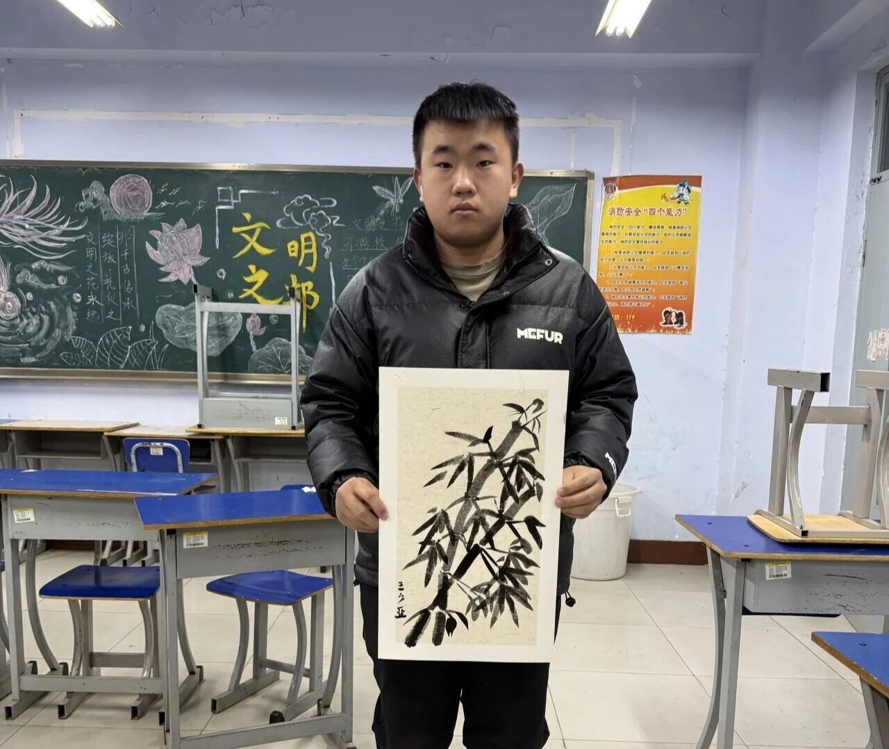 活动现场墨香四溢,同学们专注地挥毫泼墨,一支支毛笔在宣纸上舞动,勾勒出一幅幅形态各异的竹画。有的竹挺拔刚劲,有的竹飘逸柔美,每一幅作品都蕴含着同学们对“竹精神”的理解和诠释。