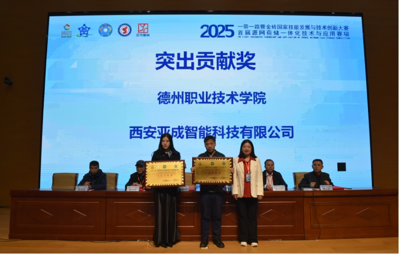 11月8日,由金砖国家工商理事会中方理事会、一带一路暨金砖国家技能发展国际联盟、一带一路暨金砖国家技能发展与技术创新培训中心主办,中国发明协会、教育部中外人文交流中心联合主办,金砖国家工商理事会技能发展、应用技术与创新中方工作组承办,德州职业技术学院、西安亚成智能科技有限公司等联合承办的2025一带一路暨金砖国家技能发展与技术创新大赛首届“源网荷储一体化技术与应用”赛项决赛在德州职院圆满落幕。