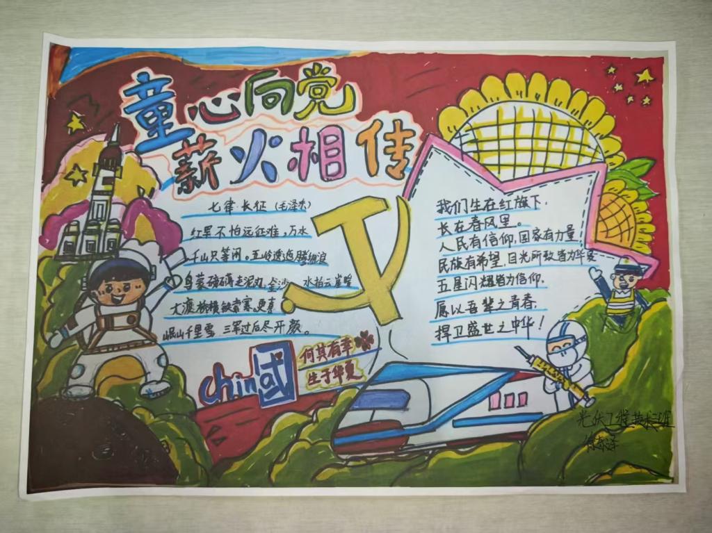 活动当天,学生围绕“初心使命”展开丰富创作。以党徽勾勒信仰初心,让红色基因融入画纸;以非遗纹样、传统图腾等传承符号,传递守护文化的责任使命。图文交织间,抽象的初心使命变得鲜活可触,既见精神内核,更显行动温度。